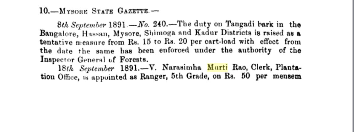 The Indian Forester Journal of the previous century carries a post of my maternal great-grandfather’s (Narasimha Murti Rao) appointment.